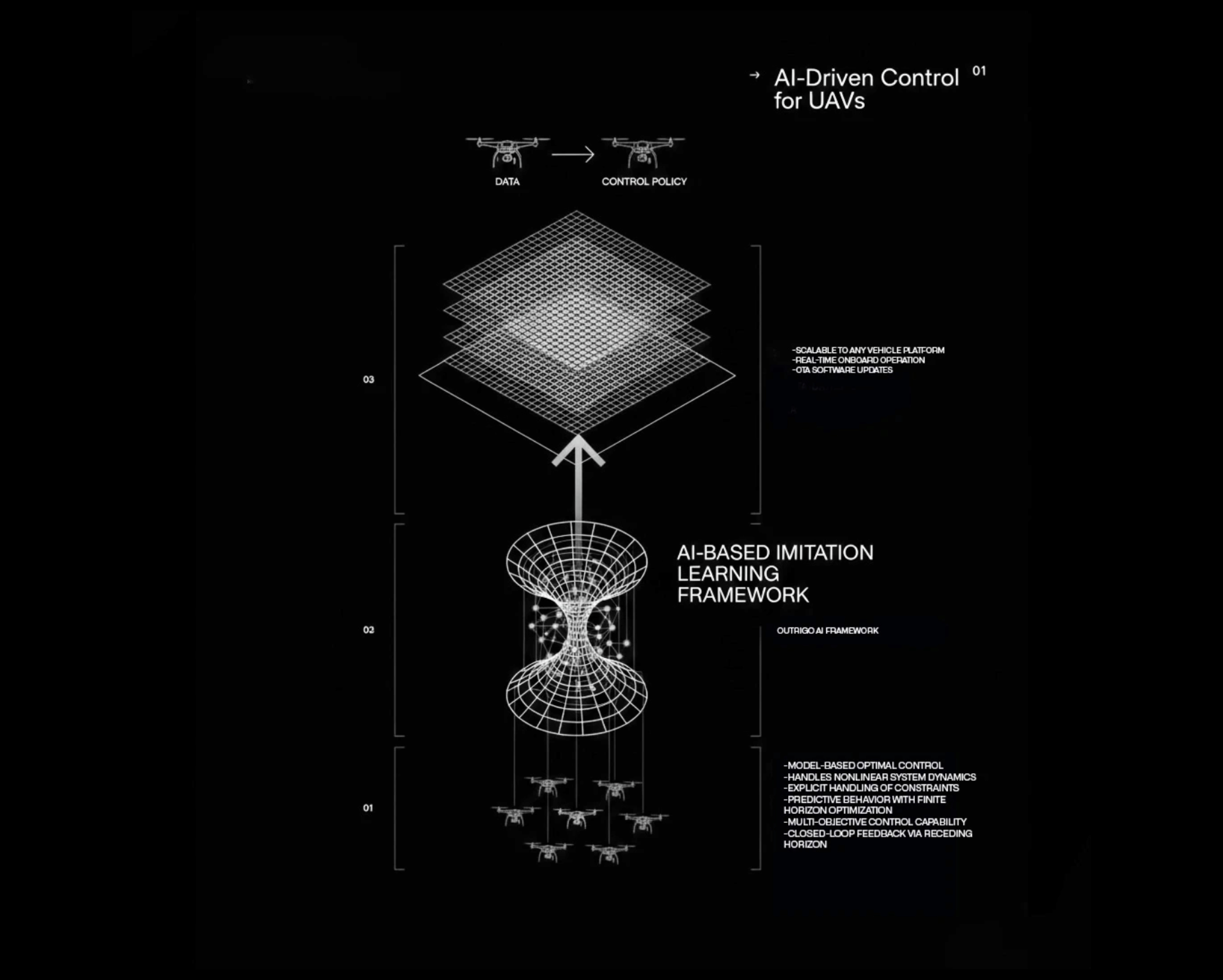 Sub-second adaptive responses in highly dynamic and unknown environments, significantly reducing collision risk. Full operational autonomy in industrial inspection and infrastructure monitoring scenarios where remote piloting is impractical or impossible.